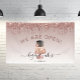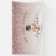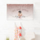 Let customers know your bakery or cake decorating shop is open for business with this elegant banner, featuring a rose gold and chocolate wedding cake illustration on a rose gold ombre background, with a top border of rose gold dripping faux glitter. The words "WE ARE OPEN!" (or text of your choice) arch above the cake in large dark rose sans serif font. Customize the sign with your business name in black handwriting script with swashes at the beginning and end, and your contact information or tag line in black sans serif font. (To keep the swashes, replace only the letters in those text fields, leaving the symbols in place.)