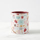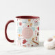 Baking billiger als Therapy Funny Kitchen Pink Coffee Tee Tasse bietet eine bunte Küche themed Muster mit dem bearbeitbaren Text "Backen ist billiger als Therapie" in der modernen Skripttypografie. Perfektes Geschenk für diejenigen, die gerne Backen, Kochen und in der Küche zu Weihnachten, Geburtstag, Muttertag. Entworfen von ©Evco Studio www.zazzle.com/store/evcostudio