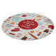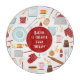 Baking billiger als Therapy Funny Kitchen Red Cutting Board verfügt über ein buntes Küchenthema Muster mit dem bearbeitbaren Text "Backen ist billiger als Therapie" in der modernen Schrift Typografie. Perfektes Geschenk für diejenigen, die gerne Backen, Kochen und in der Küche zu Weihnachten, Geburtstag, Muttertag. Entworfen von ©Evco Studio www.zazzle.com/store/evcostudio