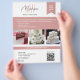 Zeigen Sie Ihr Kuchenstudio mit Eleganz und Stil. Dieser professionell gestaltete Flyer eignet sich hervorragend für hochwertige Bäckereien, Kuchenkünstler und Boutique-Dessertstudios. Personalisieren Sie es mit Ihren eigenen drei Bildern, um Ihre besten Kuchen zu zeigen, fügen Sie Ihren Firmennamen, Kontaktdaten und ein Slogline, das Ihre Marke widerspiegelt. Bietet Platz für einen QR-Code, damit Kunden problemlos einen Termin buchen können, auf Ihre Website, das Bestellformular oder die sozialen Medien zugreifen können. Ideal für Hochzeitsgestalter, erstklassige Festgebäck und moderne Kuchengeschäfte, die Qualität, Design und Details schätzen.