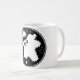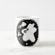 Einfache Schwarzweiss-Cartoonillustration der Mikroben, die in einer Petrischale wachsen. Bild verfügbar auf verschiedenen Geschenken und Produkten.