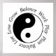 Balance - Work Play Plan Live Liebe Grow - weißes Poster mit schwarzen Schriftzeichen und Yang Symbol.