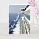 Gute Reise! Sowohl der Gruß von außen als auch die Innen-Nachricht können auf dieser Kreuzfahrtkarte angepasst werden, die einem Kreuzfahrer die besten Wünsche für eine glückliche Reise schickt. Vorderes Bild ist das von Balkonen auf der Seite eines Kreuzfahrtschiffes der Funkenklasse, die durch ruhige See hindurch fahren, um ihren nächsten Anlaufhafen zu erreichen.