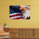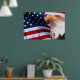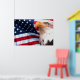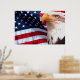 Bald Eagle 4. Juli Poster kommt mit einem schönen Bald Adler Kopf Blick auf Sie mit der amerikanischen Fahne hinter ihm .Dies ist ein wunderschönes Foto auf diesem Poster