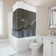 Bald Adler in Flight Shower Vorhang. Ein Glatzenadler mit Flügelspitze, der die Oberfläche eines Sees weidet. Foto von Richard Lee.