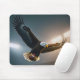Ein Glatzenadler steigt majestätisch über ein Stadion, das einen Fußball in seinen Talonen klopft, während helle Lampen des Stadions die Szene erhellen