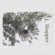 Ein Foto eines American Bald Eagle in einem Nadelbaum, auf dem viele Kiefernfüße aus seinen Zweigen herumhängen. Der reife Adler steht auf einem dünnen Glied, der die Landschaft erforscht. Der Himmel ist von einer hellgrauen Wolke bedeckt, was auf eine kühle Temperatur hinweist. Image Copyright ©2021 Kimberly J Tilley.