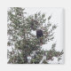 Ein Foto eines American Bald Eagle in einem Nadelbaum, auf dem viele Kiefernfüße aus seinen Zweigen herumhängen. Der reife Adler steht auf einem dünnen Glied, der die Landschaft erforscht. Der Himmel ist von einer hellgrauen Wolke bedeckt, was auf eine kühle Temperatur hinweist. Image Copyright ©2021 Kimberly J Tilley.