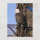 Das ist ein Foto eines Glatzenadlers, der auf Krabbentöpfen in einem Lagergebiet im niederländischen Hafen Alaska steht. Der Glatzenadler ist in Profil und behalte die Uhr für Fischerboote, die nach Holland zurückkehren.