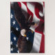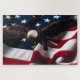 Bald Eagle 4th Of July puzzle Comes with a beautiful Bald Eagle flying in front and looking with a American flag d him .this is a beautiful foto on this puzzle