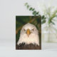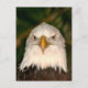 Ein erwachsener American Bald Eagle schaut direkt in die Kamera vor einem dunkelgrünen Hintergrund. Viel Platz, um einen eigenen Text hinzuzufügen oder diesen Adler zu benutzen, wie es ist!