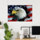Bald Eagle Kopf mit amerikanischer Flagge hinter i Poster