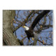 Ein prächtiger Glatzenadler, fotografiert, während er von einem Baum aus in die Luft springt.