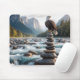 Ein Glatzenadler sitzt majestätisch auf einem ausgeglichenen Stein inmitten eines fließenden Flusses mit mächtigen Bergen im Hintergrund