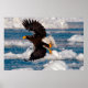 Bald Adler Over Snow Poster kommt mit einem wunderschönen Adler, der über den Ozean fliegt und im Wasser schwimmt.Dies ist ein wunderschönes Foto auf diesem Poster