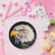 Dieses Design zeigt ein Bild des Kopfes eines Glatzenadlers. Es ist ein wunderschöner Beute, der auf Bäumen und Rissen sitzt, wenn er nicht durch die Luft steigt, um sein nächstes Essen zu suchen. Der Glatzadler ist auch der Nationalvogel der Staaten, weil das Tier in der Region heimisch ist. Auf dem Großen Siegel der Vereinigten Staaten, wo das Tier mit seinen Talonen dreizehn Pfeile und einem Olivenzweig mit dreizehn Blätter erfasst, ist eine Vogeldarstellung zu sehen.