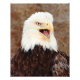 Ein Bald-Adler landet auf einer Felswand und schreit in den Wind. Seine weißen Kopffedern sind gegen die Brise gequetscht. Sein Mund ist offen, und Sie können seine gerötete Zunge sehen. Seine Augen konzentrieren sich auf alles, was seine Aufmerksamkeit erregt.