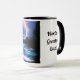 Geben Sie Ihrem Vater diese "Eine von einer Art" Bald Adler Tasse! Es ist ein majestätischer Adler, der während eines Blitzes über einem Mondlichtfluss ragt und die Worte ..."Weltlings größter VATER! Original Art Design von Künstler Kerry Miller.