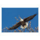Ein prächtiger Glatzenadler, fotografiert, während er von einem Baum aus in die Luft springt.