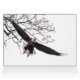 Ein prächtiger Glatzenadler, dessen Flügel sich durch den Baumstamm ausgebreitet haben.