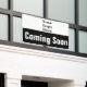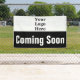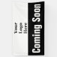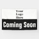 Die obere Hälfte des Banners ist weiß. Die untere Hälfte ist schwarz. Sie können das Display oben durch Ihr Firmenlogo ersetzen. Unten ist ein weißer Bildschirmtext, den Sie bearbeiten können, um eine benutzerdefinierte Nachricht zu zeigen (Shown: Coming bald).