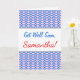Dieses "get well"-Grußkartendesign zeichnet sich durch ein Muster aus, das blaue und rosa Diamantformen beinhaltet. Auf der Vorderseite finden Sie auch die ermutigende und unterstützende Nachricht "Get Well bald" sowie den personalisierten Namen des Kartenempfängers. Im Inneren befindet sich eine individuell angepasste "Get-well-soon"-Nachricht, die den Empfänger der Karte trösten soll. [~Z0000063]
