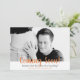 Ein niedlicher Vater umarmt das Baby mit den Worten: "Bald kommt es!". Passen Sie sich mit Ihrem eigenen Vater an, um Foto zu sein, das den Babysprung umarmt, oder komponieren Sie Ihr eigenes Thema für Ihre Ankündigung. Die Schrift ist modern und modern mit Pfirsich- und Grautönen. Die Rückseite der Karte befindet sich in einem passenden Pfirsichfarben.