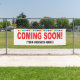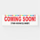 Bald mit Aufmerksamkeit erregenden farbenfrohen Fahnen und großen roten Typ. Business Opening Sign Banner, um zu werben, dass ein neues Geschäft bald in einem Ort zu eröffnen. Bearbeiten Sie die Namenszeile zu Ihren eigenen Informationen. Ändern Sie die Hintergrundfarbe, wenn Sie möchten.
