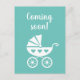 Bald niedliche Schwangerschaftsankündigungskarten mit Babywagen-Design. Benutzerdefinierte Postkarte für die Erwartung eines neuen kleinen Mädchens oder Jungen. Benutzerdefinierte Hintergrundfarbe mit Bachterwalze / Buggy. Auch für Babydusche Party gut geeignet. Fügen Sie Ihre eigene schöne Nachricht auf der Rückseite hinzu. Elegante Schreibweise für Pinselskripte.