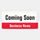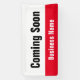 Dieses Outdoor-Banner ist hell rot, schwarz und weiß. Sie können den Text nach Ihren Wünschen bearbeiten. Sie können Ihre benutzerdefinierte Nachricht hinzufügen (angezeigt: Kommender Geschäftsname). Die Oberseite ist weiß mit schwarzem Text. Der untere Teil ist hell rot mit weißem Text für Ihre Telefonnummer oder benutzerdefinierten Text. Alle Texte können bearbeitet oder gelöscht werden.