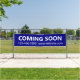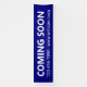 Dieses kommende Banner ist marineblau. Der Text ist weiß. Bald ist ein großer Schriftart. Es ist über zusätzlichen Text, den Sie bearbeiten können, um eine benutzerdefinierte Nachricht wie Ihre Telefonnummer und Website anzeigen.