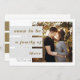 Pregnancy Announcement Fotokarte mit trendiger überdimensionaler Typografie und Überlappungen von Textblöcken. Bereit zum Anpassen mit Ihrem eigenen Foto (angezeigt in Quadrat / Instagram-Format), Ihren Namen und Baby Fälligkeitsdatum. Das Design hat eine moderne, geschlechtsneutrale Farbpalette aus Grau und Gold.