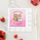 Land und Western Thema rustikale Mädchen's Baby-Dusche Papier Teller. Grafik ist ein niedliches kleines Mädchen in einem Cowboy, der neben einem Teddybär sitzt. Rosa Hintergrund. Papierservietten für Babydusche.