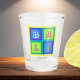 Ein Glas mit dem Drehbuch "Bali, Indonesien" in lebhaften Farben. Dieses wunderschöne Glas dient als wunderbares Souvenir oder dekoratives Stück für die Bewohner von Bali, Touristen oder Fans von Bali.