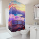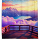 Dieser Duschvorhang hat einen schönen Balkon mit Blick auf die Wolken und Berge.