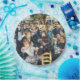 Pierre-Auguste Renoir. Ball am Moulin de la Galette . Gruppenportrait in blauen Farben. Ein Feiertag auf der Straße. Eine große Gruppe von Jungen und Mädchen sitzt an einem Tisch. Die Leute tanzen im Hintergrund. Reproduktion berühmter Kunstbilder im öffentlichen Bereich.