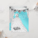 Hübsches, weißes Party Kleider und Tiara mit Rose, aquamarin blaue Quinceanera Einladungen. Passen Sie die Vorder- und Rückseite für Ihre Veranstaltung an. Sie können Ihren eigenen Schriftart Stil, Farbe und Größe des Schriftartes und Ihre eigene Formulierung wählen.