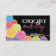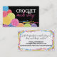 Ändern Sie die Hintergrundfarbe auf dieser niedlichen Häkchen-Visitenkarte oder großen Geschenketikett oder hängen Tag. Farbenfrohe Garnbälle mit Häkelhaken für Krocketbiz oder für Ihre handgefertigten Bekleidungsartikel, Spielzeuge und Geschenke. ÄNDERN SIE DIE FARBE des Hintergrunds im Bereich Anpassen, dann unter Bearbeiten, dann Hintergrund.
