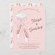 Feiern Sie einen Balletttanzabsolventen mit dieser schönen Pointe-Abschluss-Einladung. Die Tanzschuhe haben einen schönen rosa Bogen und einen weißen Abschluss Hut! Perfekt für jemanden, der schließe und tanzt, oder jemanden, der mit seinem Abschluss im Tanz geschlossen ist!