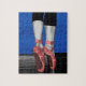 Dieser einzigartige kleine Druck hat ein wenig Skizze oder Aquarellfarben. Tanzfüße und Beine in Rosa, Blau und Grautönen. Der Hintergrund ist eine lebendige blaue Farbe mit Musiknoten im Schatten.