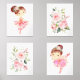 Fügen Sie mit diesen wunderschönen Kunstdrucken die Touchs in das Kinderzimmer oder Kinderzimmer Ihres Babys ein! Das Design zeichnet sich durch Ballerina mit braunem Haar und rosa Blume in Aquarell aus.