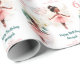 Personalisiertes Verpackungspapier für ein Mädchen Geburtstag, mit der niedlichen kleinen Ballerina mit dunkler Haut und Haar, Ballons und Blume in sanften Rosa-, aquamarin- und Cremetönen auf weißem Hintergrund. Personalisieren Sie den Text und die Nummer des Geburtstages einfach. Kate Eden Art