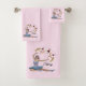 Ballerina in blau auf rosa Persönlicher Name Badhandtuch Set