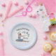 Schöne Ballerina in blauem Tutu und Hausschuhe in Sitzposition gestellt.