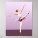 Dieses digitale Gemälde zeigt eine junge Ballerina in Rosa, Lavendel und Weiß, die eine wunderschöne Pose markiert. Der Tänzer hat rotes Haar. Sie ist auf den Zehen, mit einem Bein, das vor ihr ausgespannt ist, und einem aufgesetzten Arm. Der Hintergrund ist in lila Tönen gehalten. Anpassen, indem Sie eine eigene Beschriftung, einen eigenen Namen oder ein Monogramm hinzufügen.