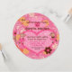 Eine entzückende Geburtstagseinladung in der runden Kreisform mit Losen des Rosas, der Herzen, der Blumen und der kleinen Ballerina monkeys mit Bereichen, die Sie alle ihre Geburtstags-Partybesonderen leicht addieren können!