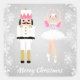 Ballerina und Nutcracker auf einem schneeweißen, hellgrauen Hintergrund Weihnachtsaufkleber. Sie können die Bilder (Ballerina und Nutcracker) hoch und runter bewegen, links und rechts, sie verkleinern oder eines der Bilder entfernen. Fügen Sie Ihren eigenen Text hinzu und ändern Sie Schriftart, Farbe oder Größe