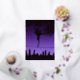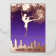 Balletttänzerin tanzt über die Skyline von New York City, Feuerwerk und Sterne am Himmel. Elegante Schriftart-Kombination. Lila und Rose Gold. Niedliche und extravagante Einladung 16 . Geburtstag.