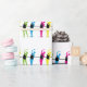 stilisierte Ballerinas in hellen Farben üben am Bar. Neonfarben gelb, rosa, blau und grün