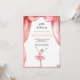 Adorable Ballett-Thema kleine Mädchen Party Einladung mit einer süßen Abbildung einer Ballerina in einem Tutu Tanz auf Bühne in einer hellrosa Farbpalette.